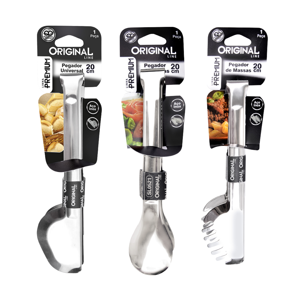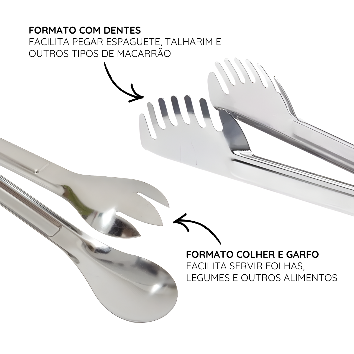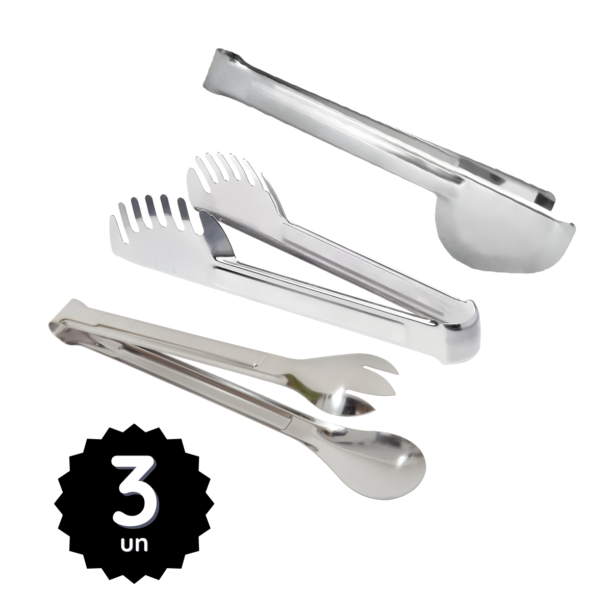 Kit 3 Pegadores Inox (Universal + Salada + Massa) 20cm – Completo para sua Cozinha