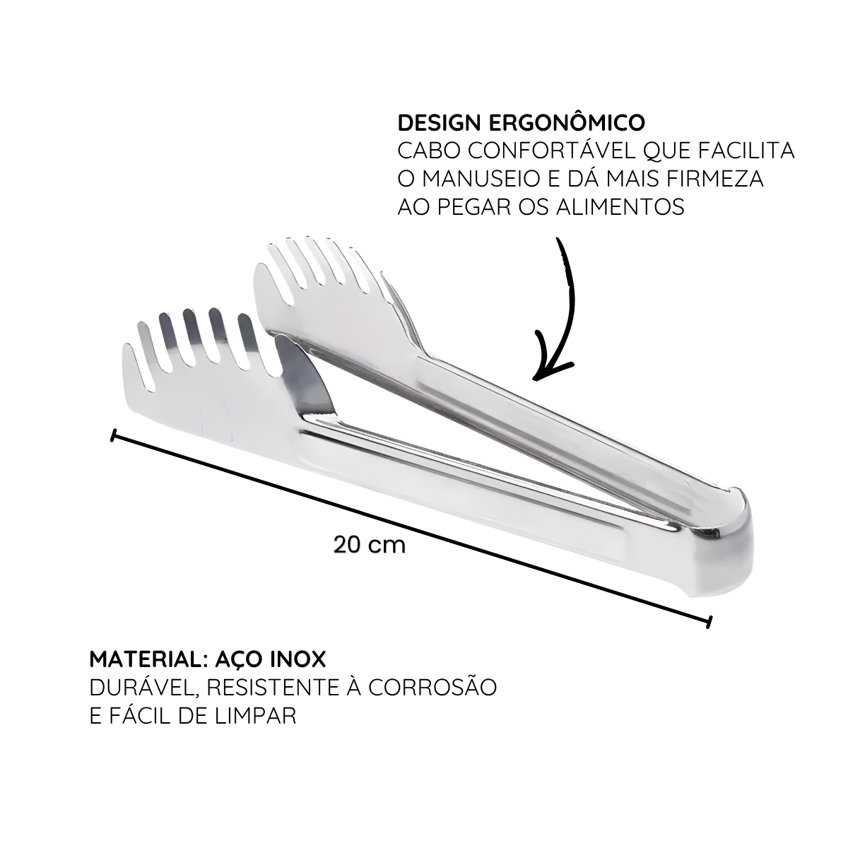 - Pegador de Salada: formato colher + garfo, ideal para folhas, legumes e acompanhamentos