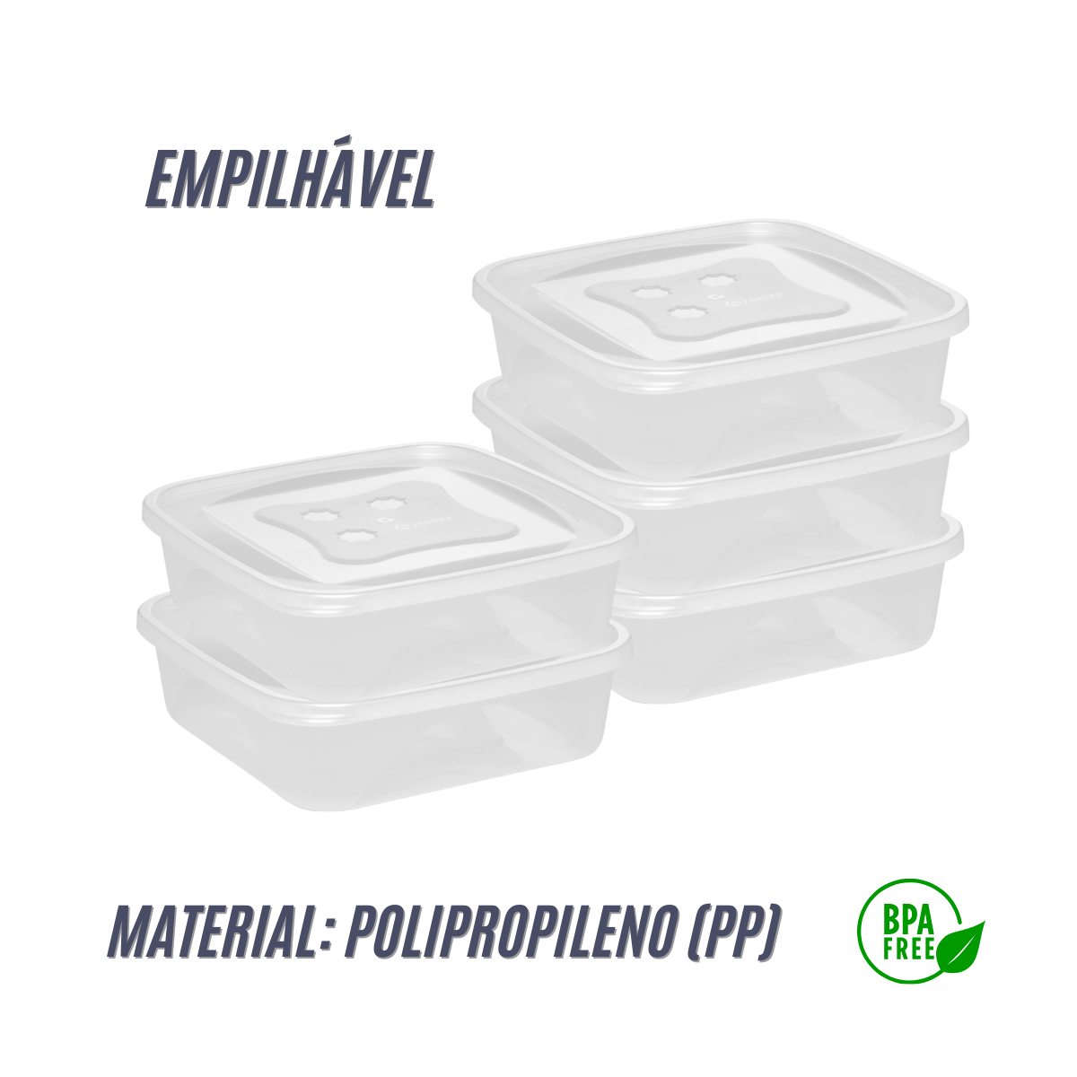 Formato Quadrado: Perfeito para otimizar espaço em geladeiras e armários.