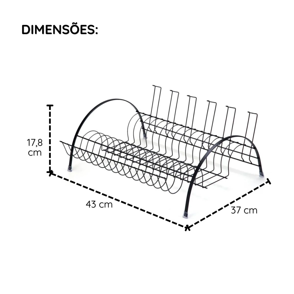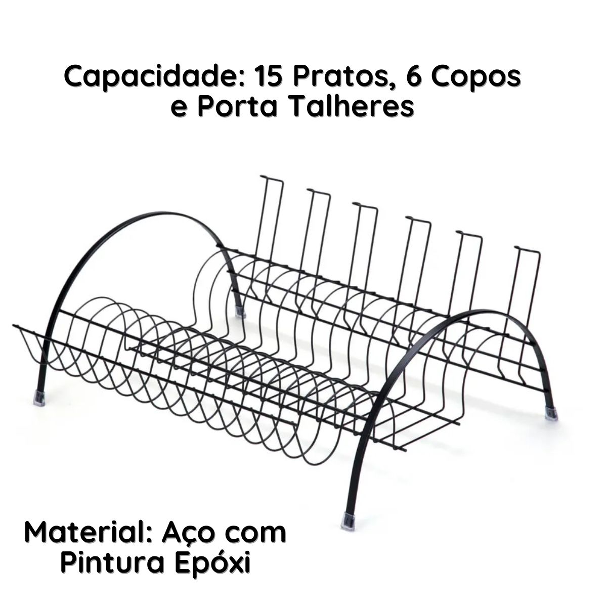 O Escorredor de Louças com Capacidade para 15 Pratos é a solução ideal para quem busca organização, resistência e estilo na cozinha. Feito em aço com pintura epóxi preta, oferece alta durabilidade, resistência à umidade e um visual moderno para compor a bancada. Com espaço para pratos, copos e talheres, ele permite secagem rápida e organizada, otimizando a rotina de lavagem de louças.
