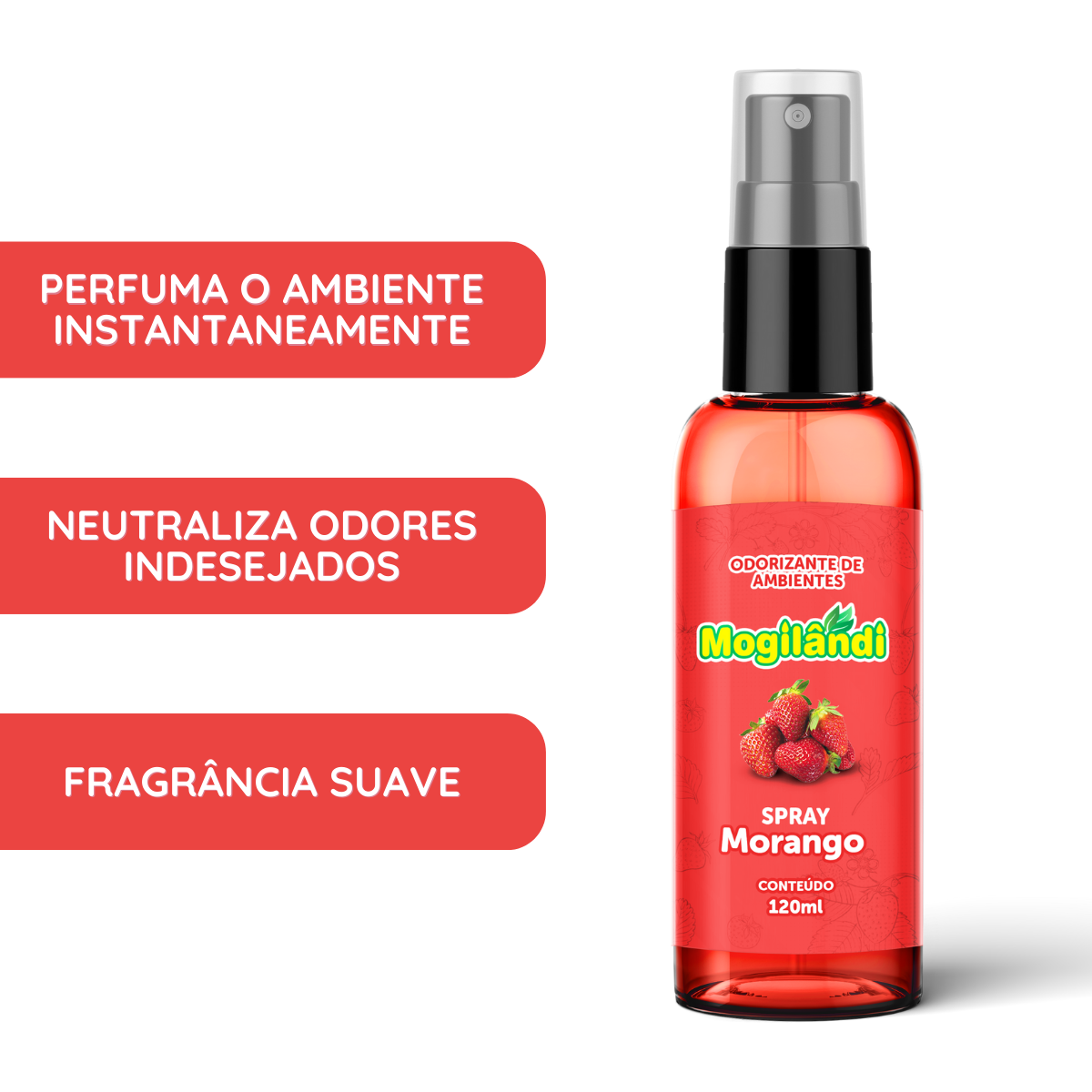 Aromatizante Spray Morango 120 ml – fragrância doce e acolhedora para o seu ambiente