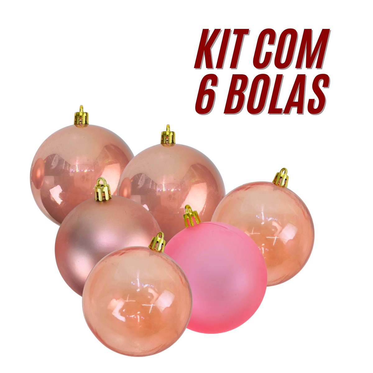 Kit 6 Bolas de Natal Mistas 8 cm - Rosa Lisa e Fosca
