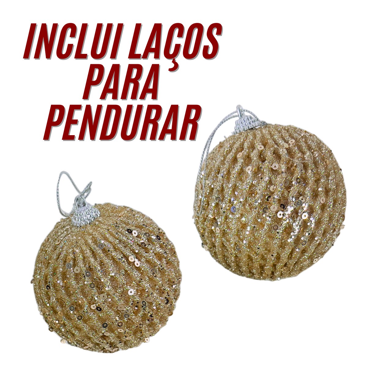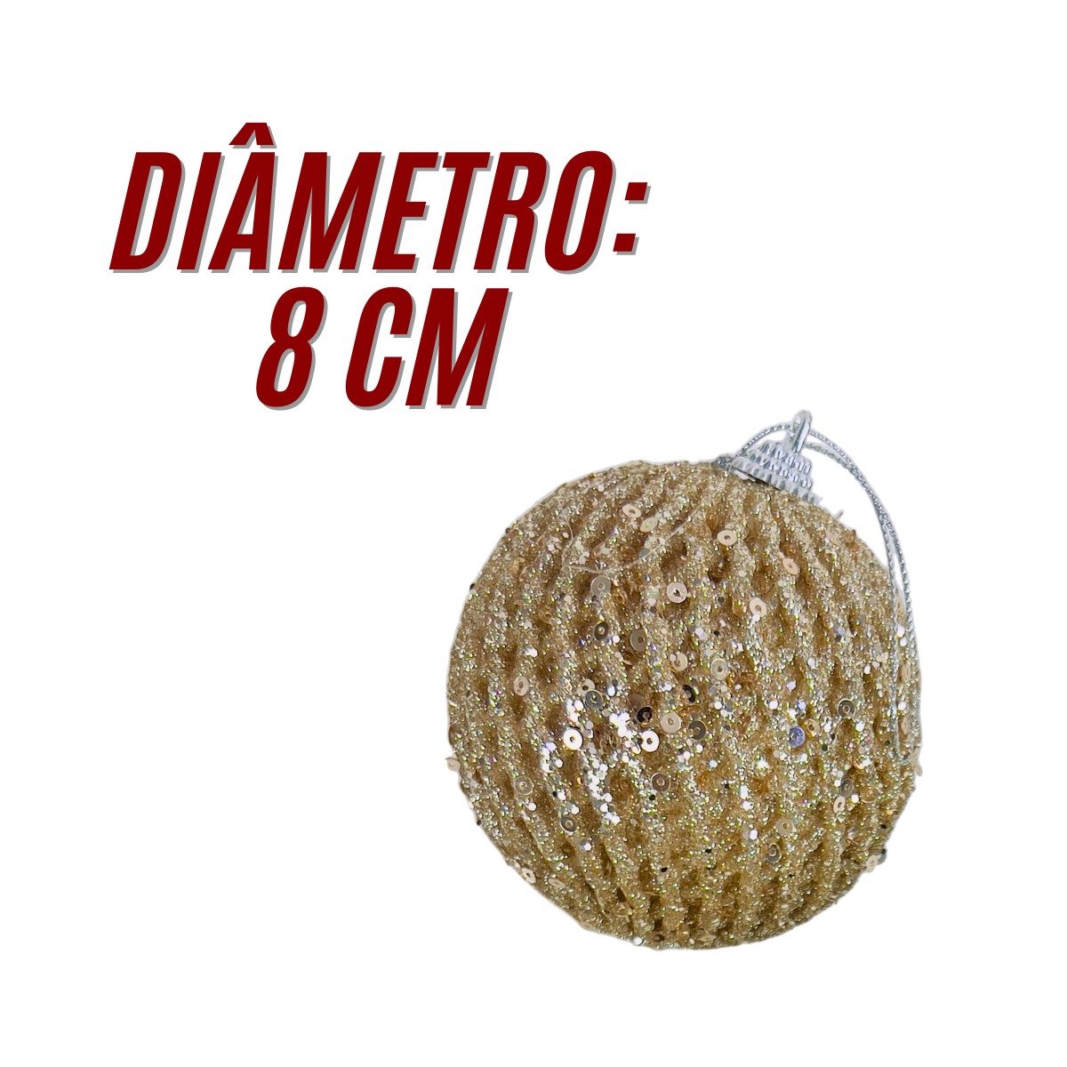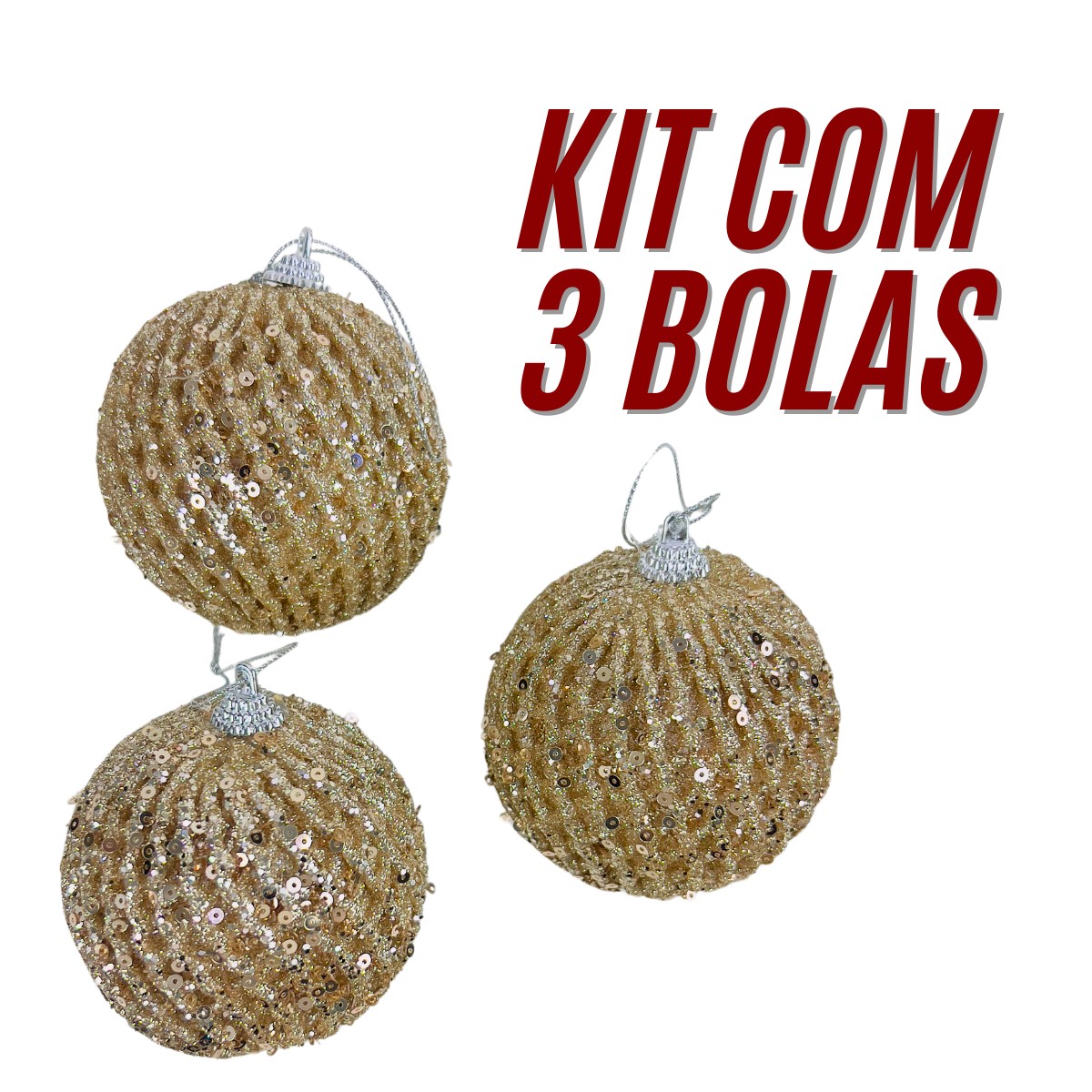 Kit 3 Bolas de Natal Trançadas Champanhe 8 cm para Árvore