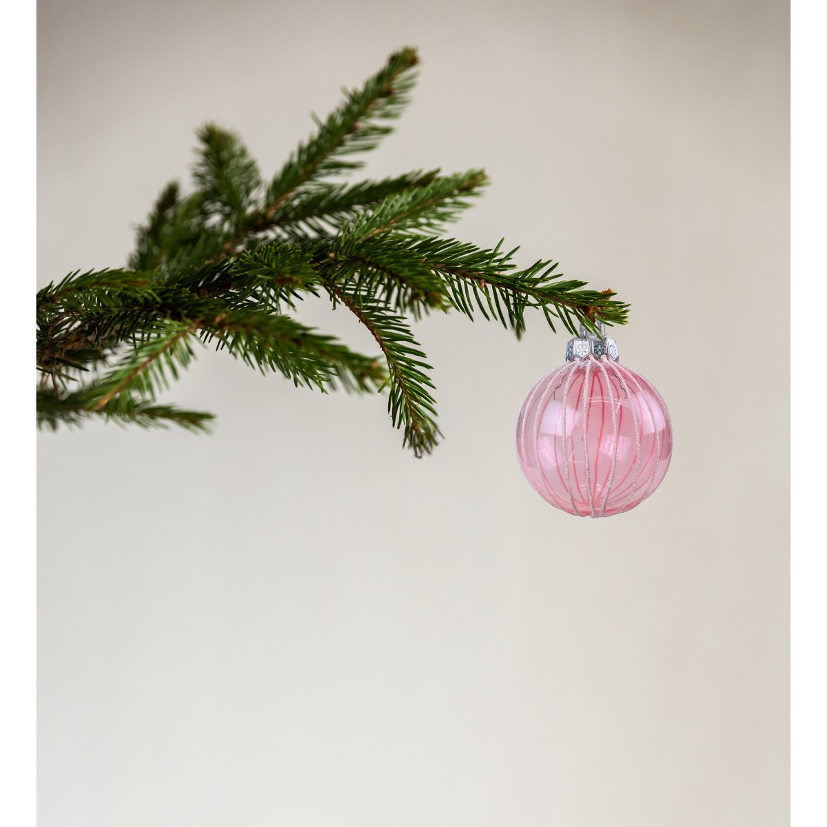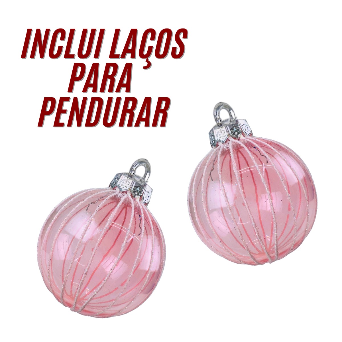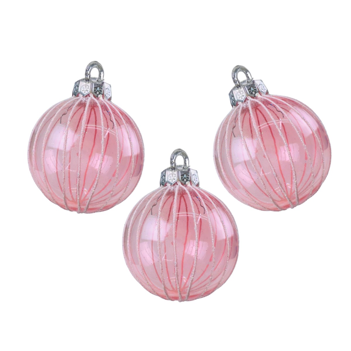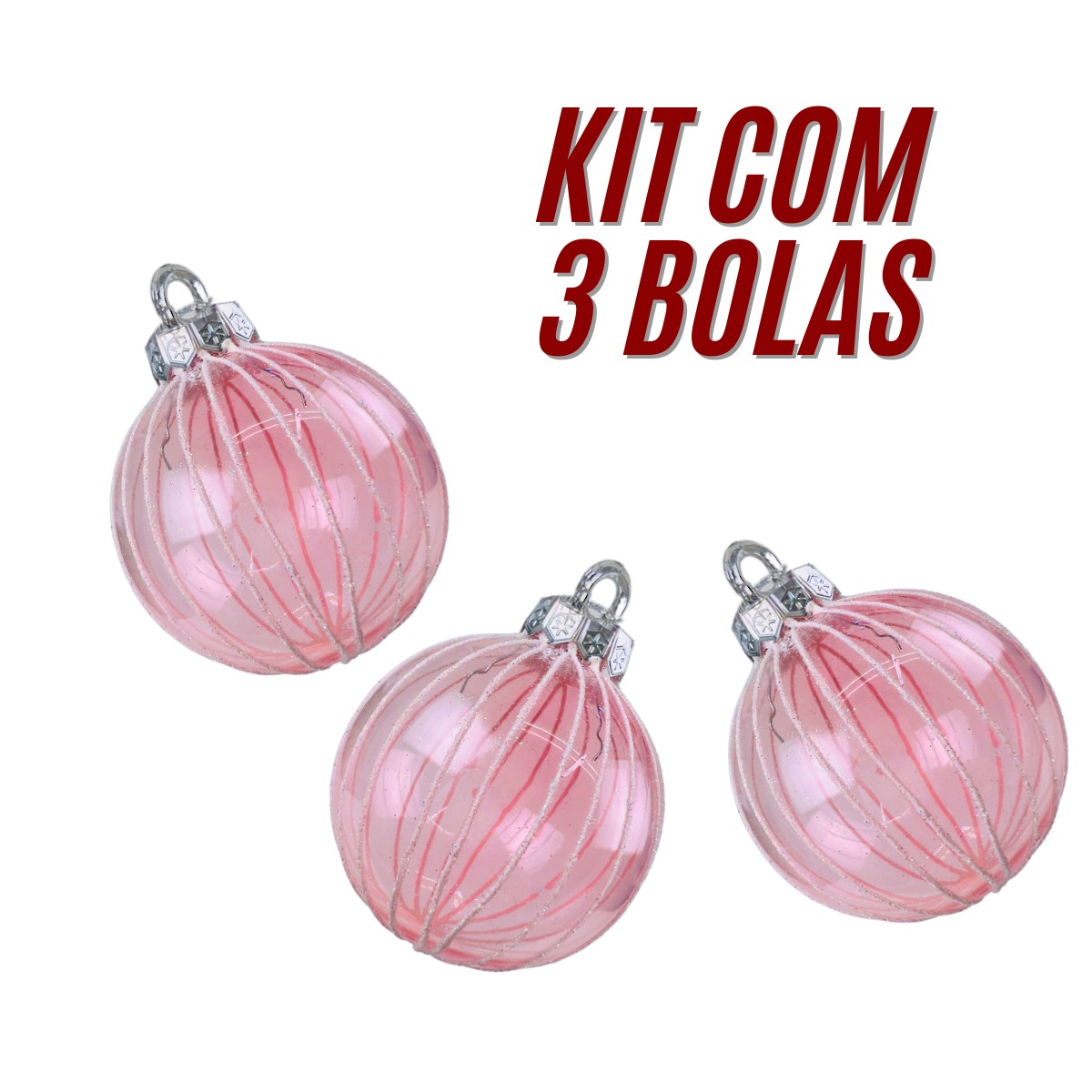 Kit 3 Bolas de Natal Rosa com Linhas Brancas 8 cm para Árvore