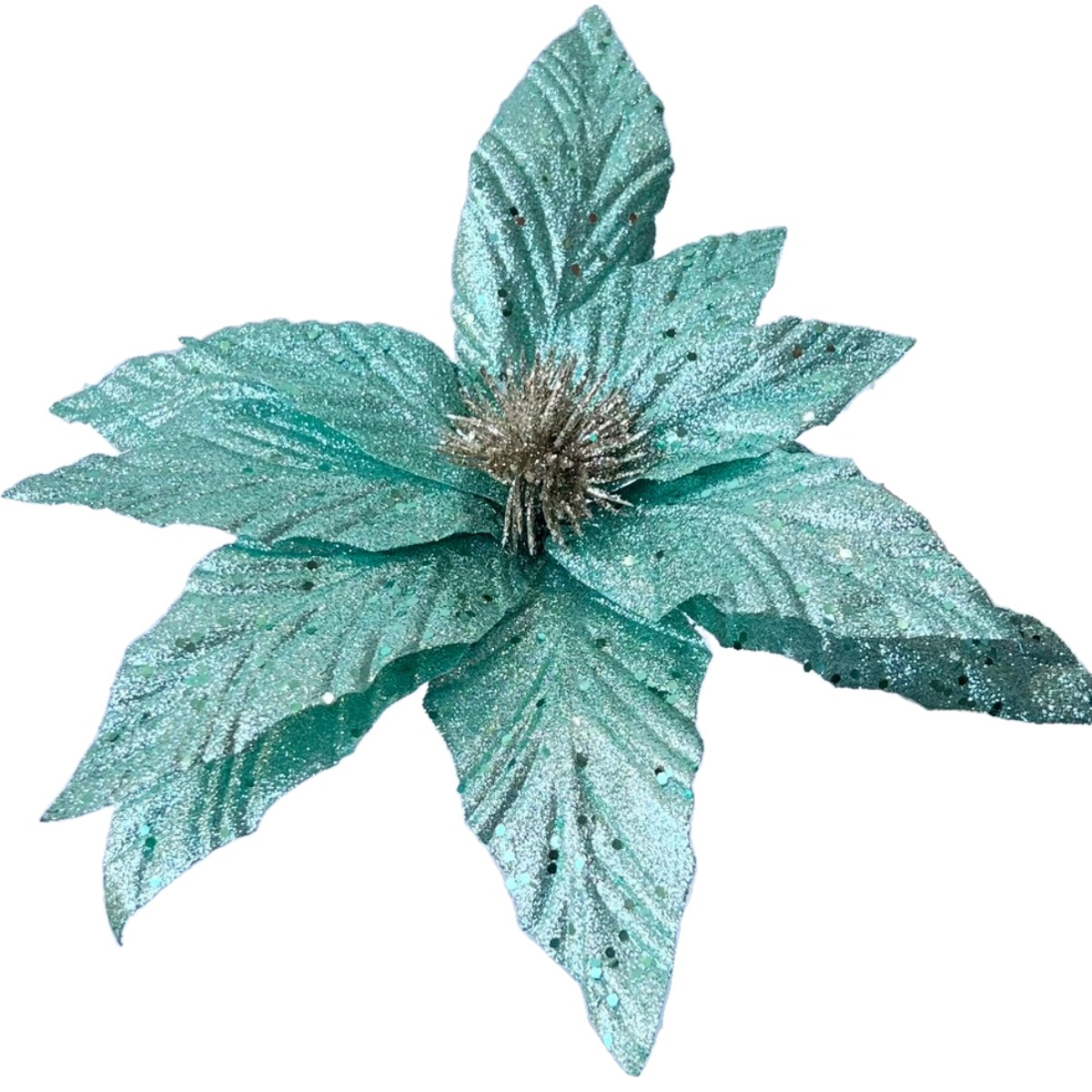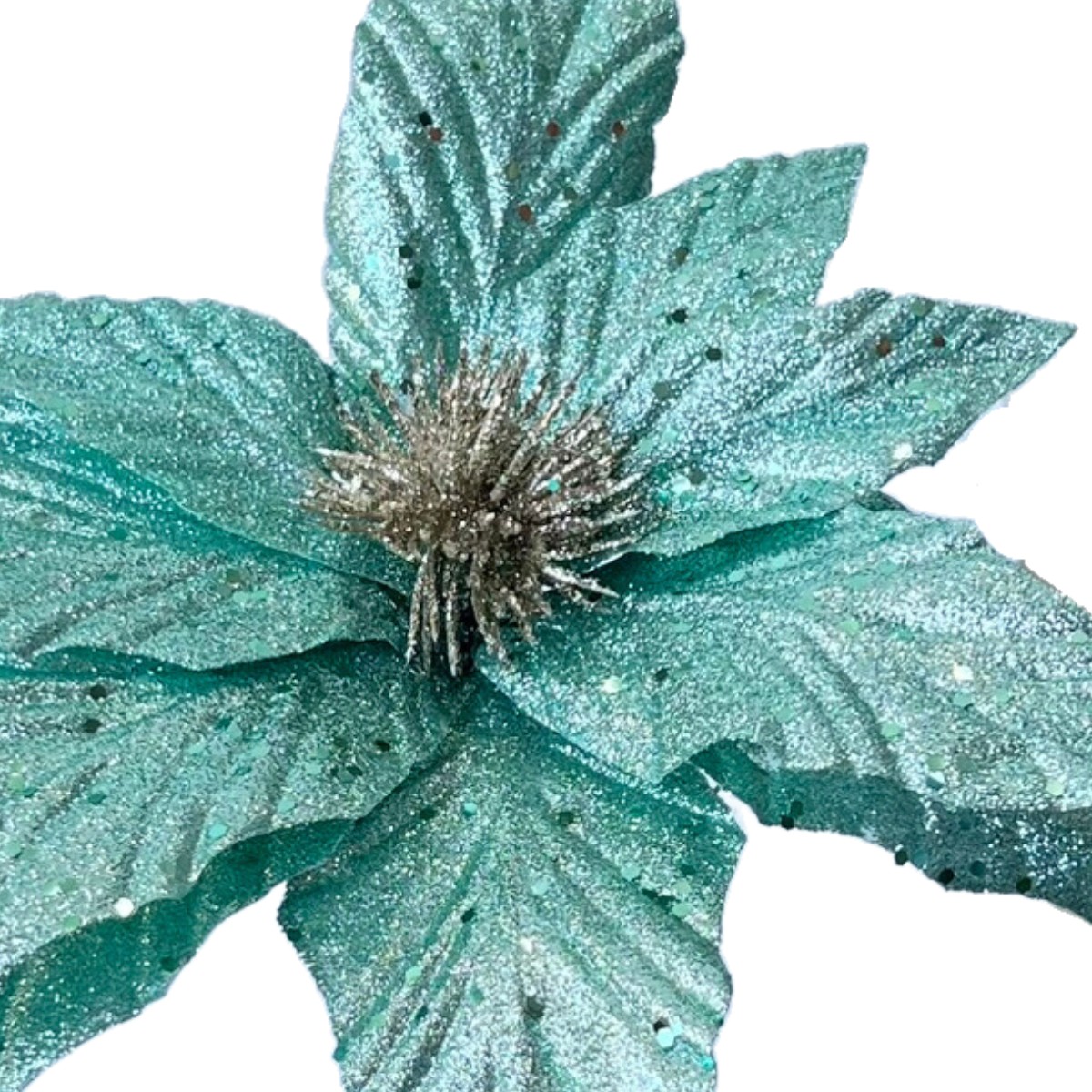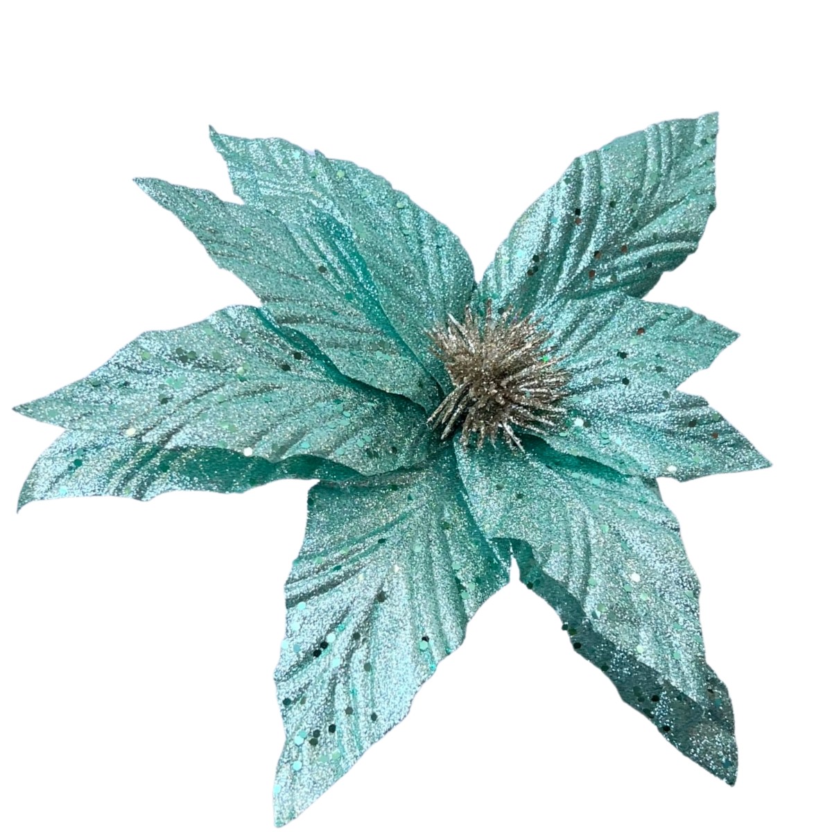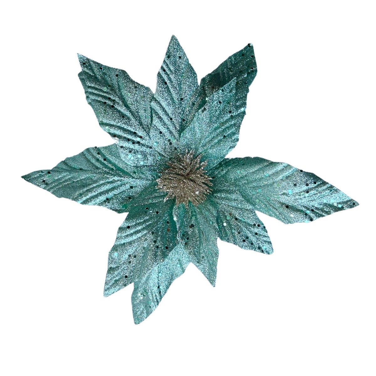 Flor Artificial Bico de Papagaio com Glitter - Decoração de Natal 36 cm