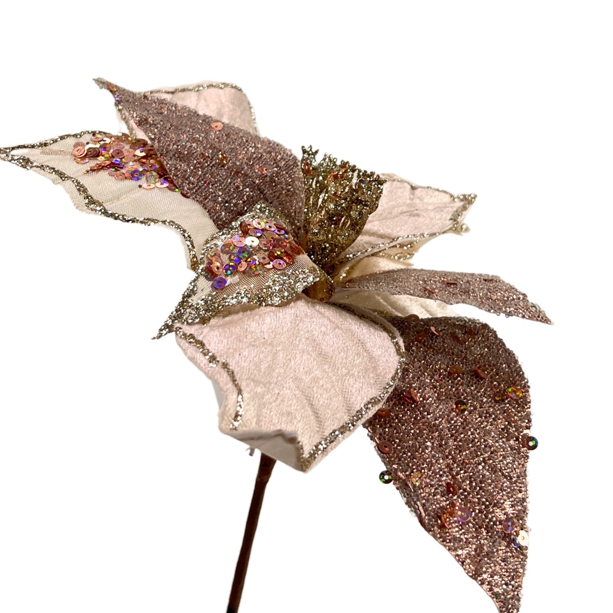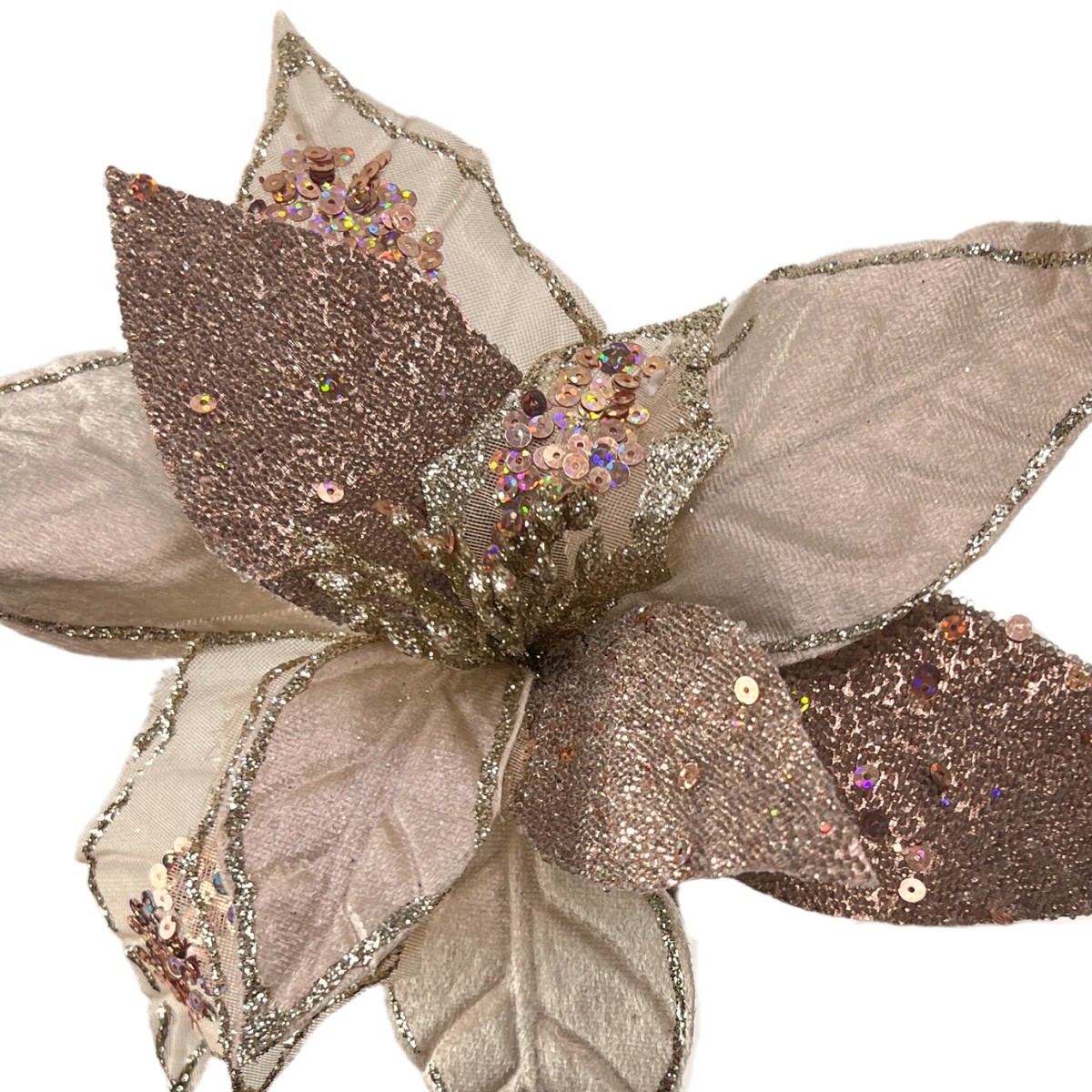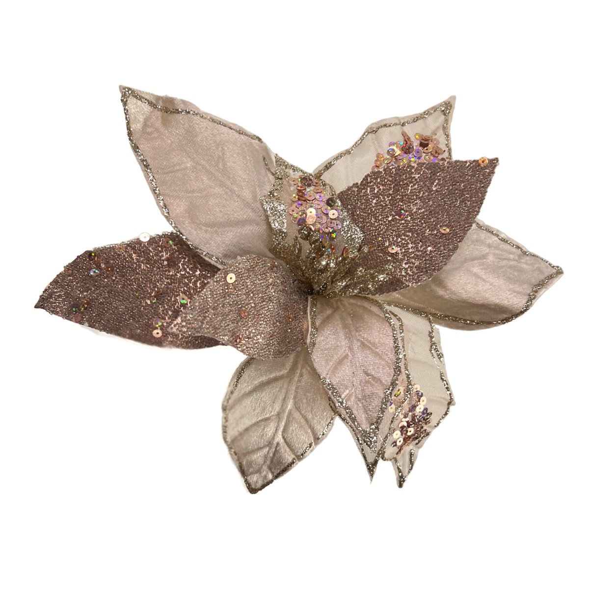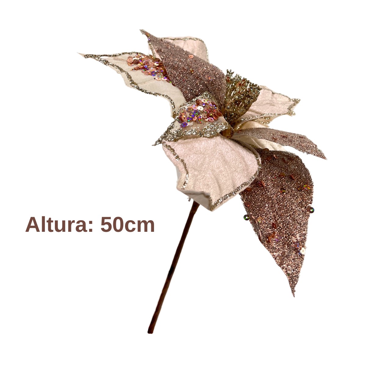 A Flor de Natal Poinsétia Champanhe Brilhante para Enfeite de Árvore é a escolha perfeita para quem deseja adicionar um toque de elegância e sofisticação à decoração natalina. Com seu tom suave de champanhe e acabamento brilhante, essa poinsétia destaca-se por sua beleza e brilho, tornando-se um enfeite encantador para árvores de Natal, guirlandas e arranjos festivos. Suas pétalas delicadamente trabalhadas criam um visual luxuoso, ideal para complementar outros ornamentos e iluminar o ambiente com um toque festivo.