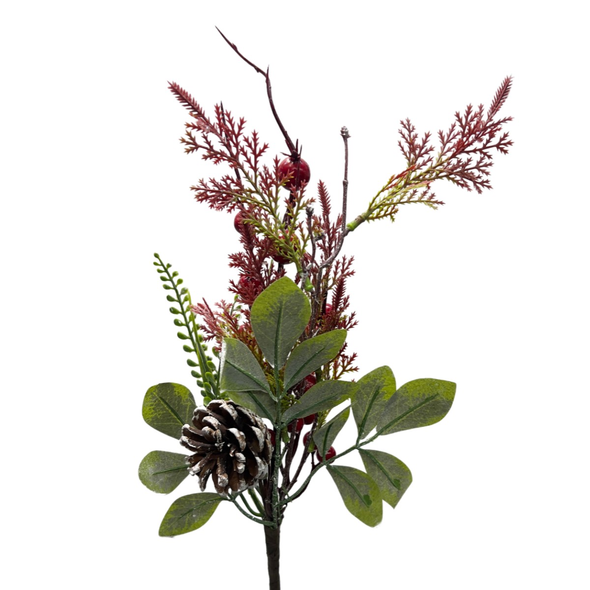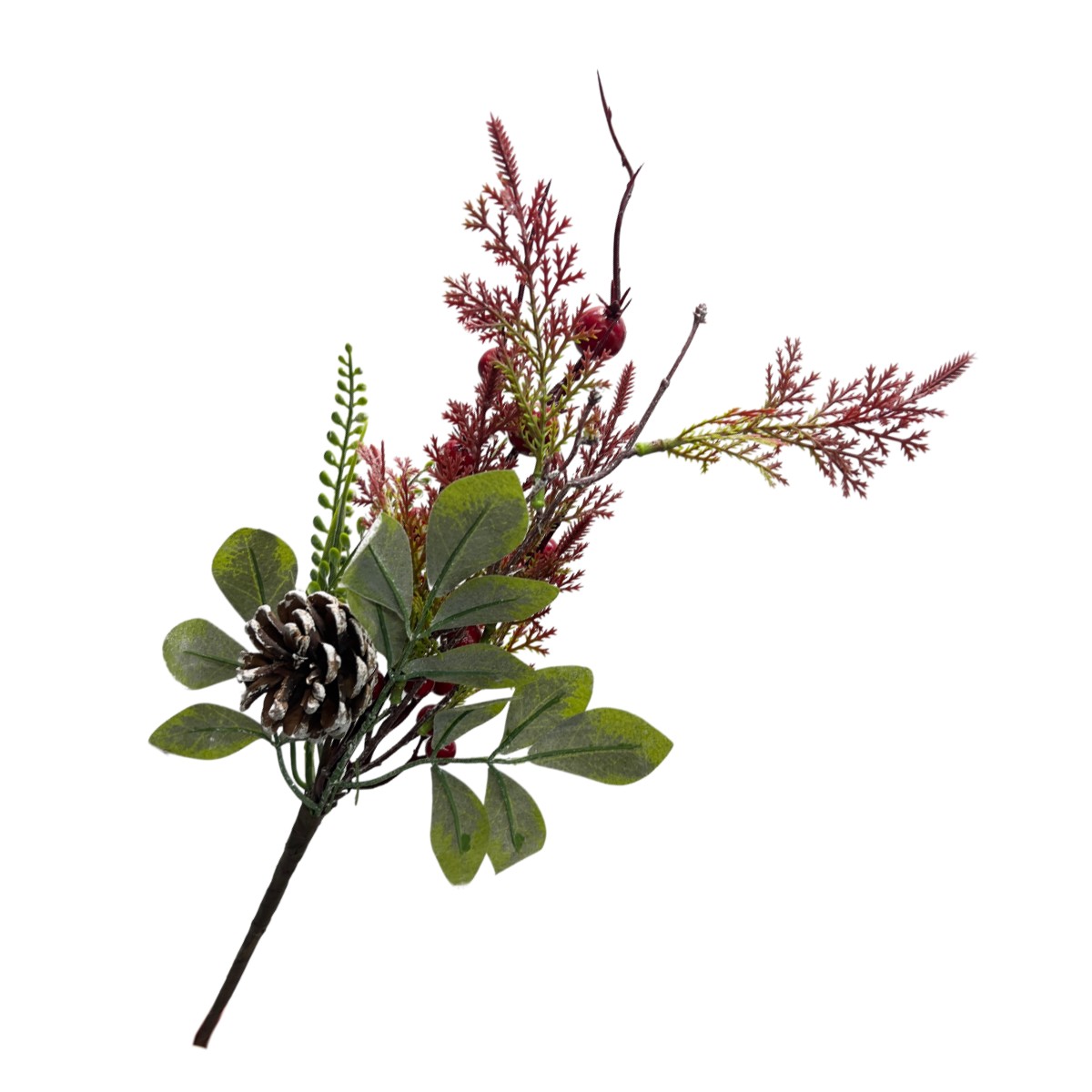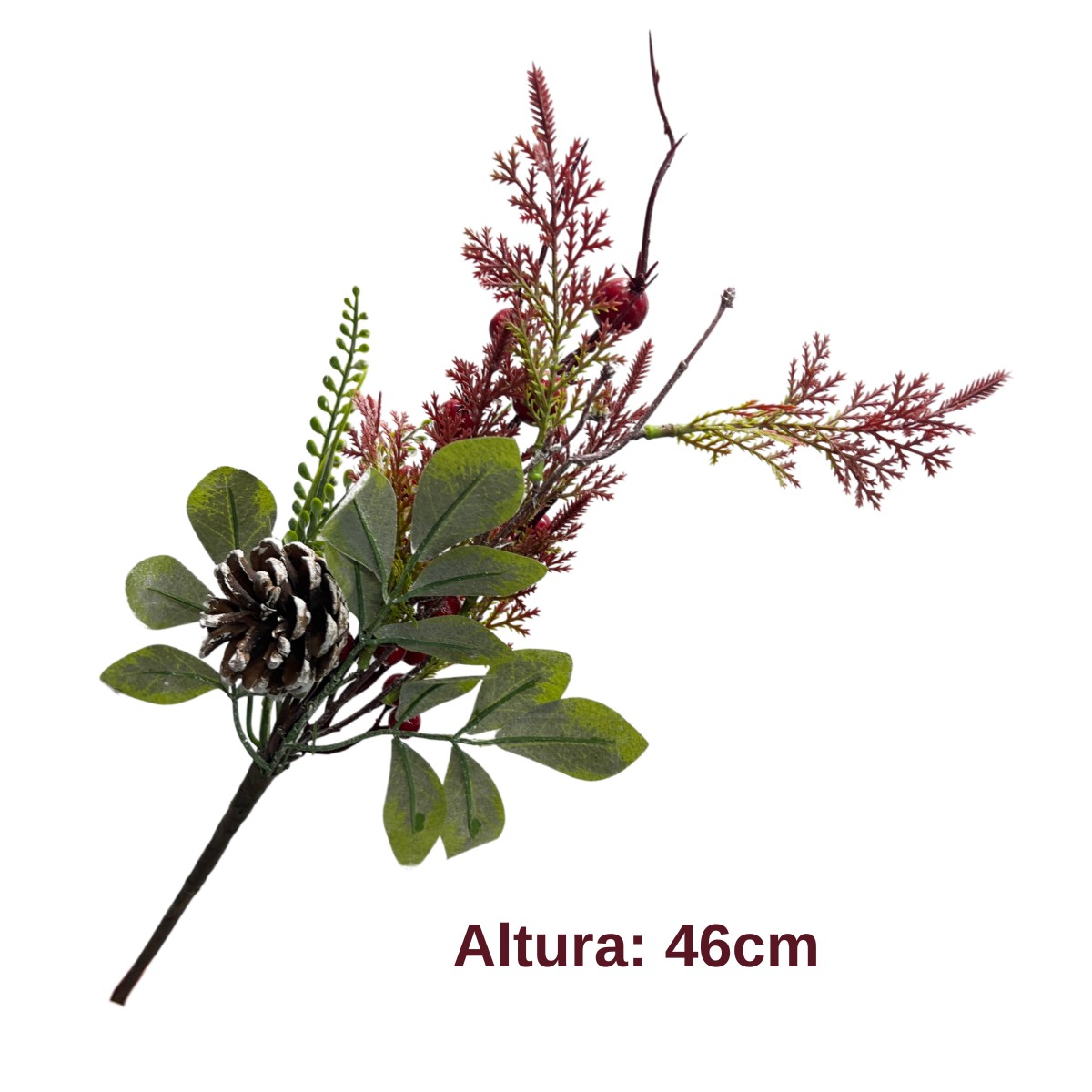 Galho Decorativo Azevinho e Pinha 46 cm Enfeite Natalino