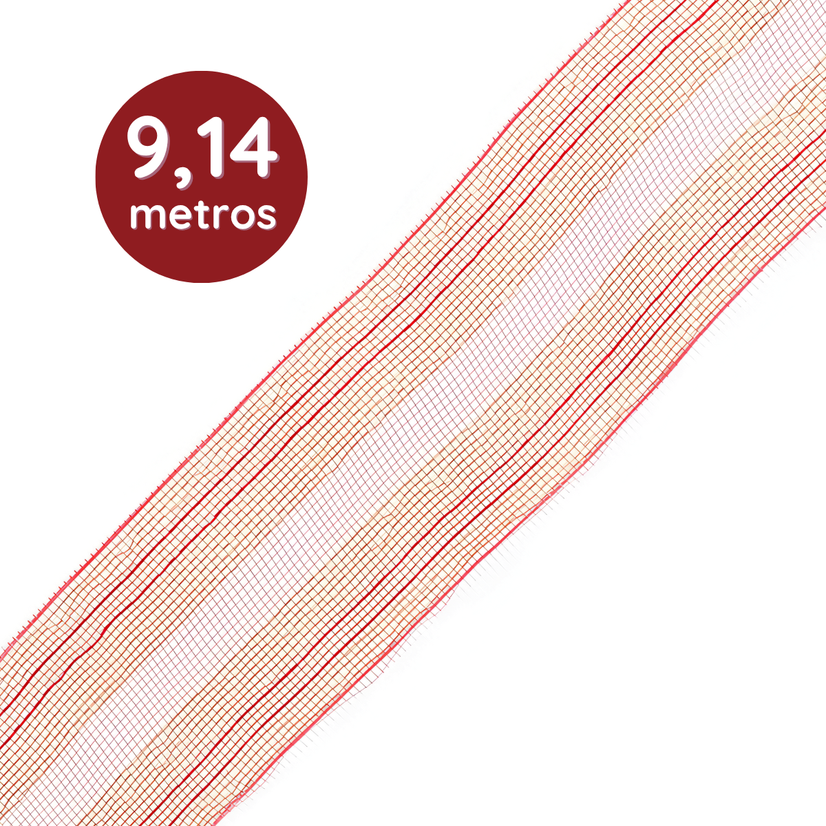 Fita Decorativa Tela Bege e Vermelha 10cm x 9,14m