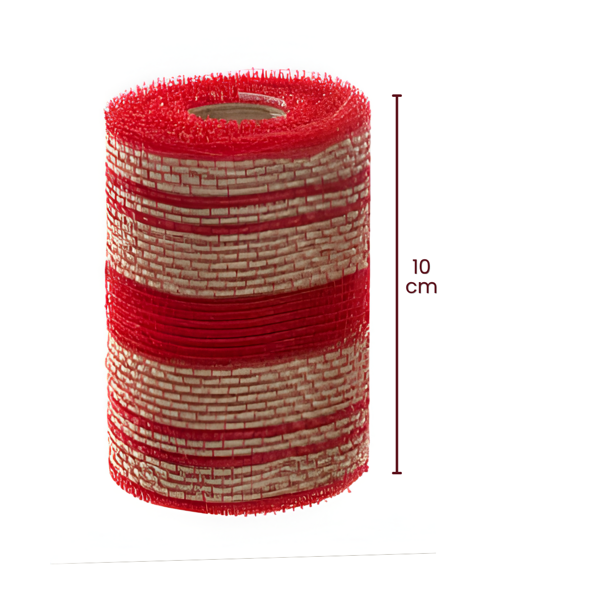 Dica de Decoração: Combine a fita tela bege e vermelha com elementos naturais, como pinhas, ramos verdes e fitas de juta, para um visual rústico e elegante. Também pode ser usada sobre galhos ou vasos para criar composições criativas e personalizadas.