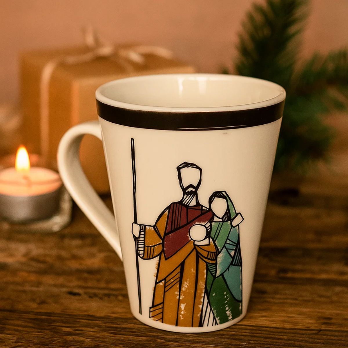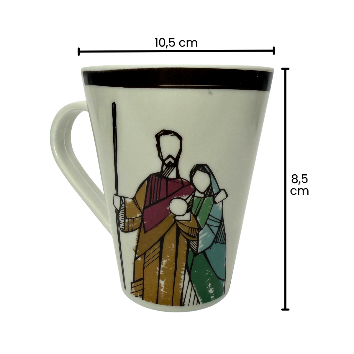 Decoração e uso: Além de funcional, a caneca pode compor sua mesa de Natal ou até mesmo ser usada como peça decorativa, trazendo a simbologia da Sagrada Família para o seu lar.