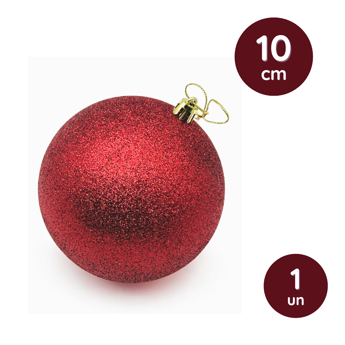 Bola de Natal Decorativa com Glitter 10cm – Vermelha ou Dourada (1 Peça)