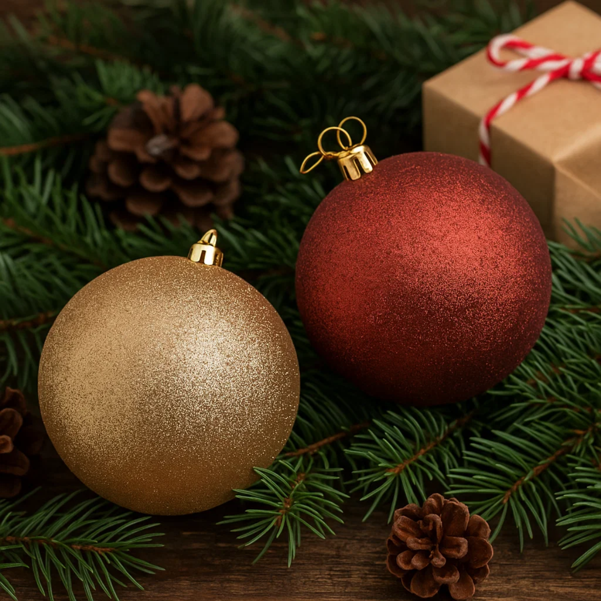 Dica de Decoração: Combine bolas vermelhas e douradas com laços, pinhas, flores e luzes para criar uma decoração natalina tradicional e aconchegante. Misture tamanhos diferentes de bolas para dar profundidade e movimento à sua árvore!