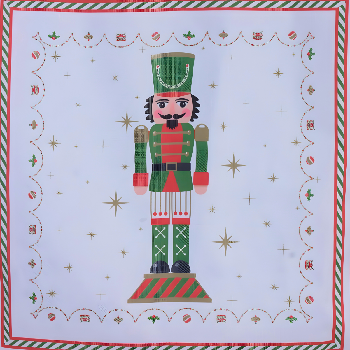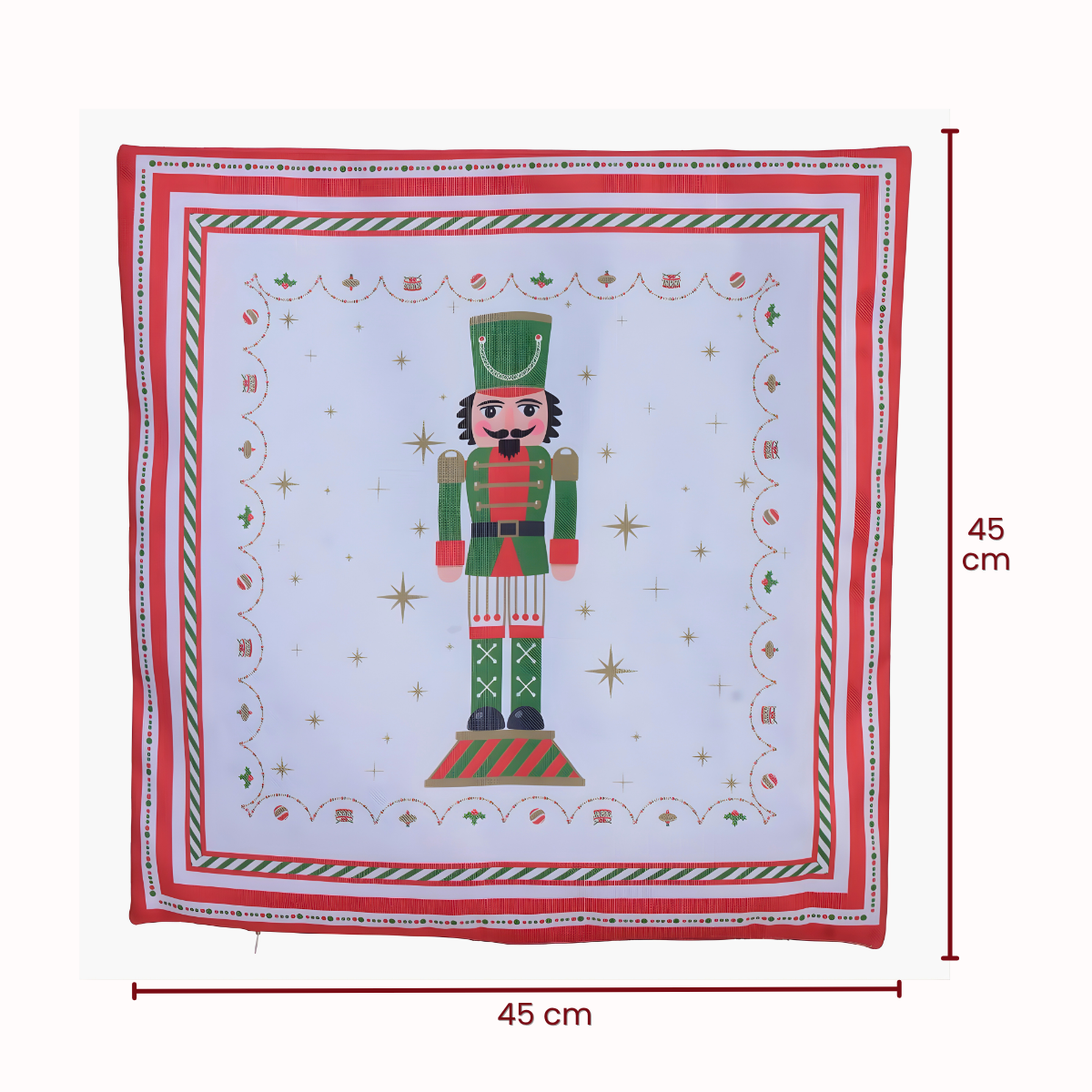 A magia do Natal ganha vida com esta linda Capa de Almofada Soldadinho Quebra-Nozes. Com cores vibrantes e ilustração charmosa, ela transforma qualquer cantinho em um cenário natalino acolhedor, lúdico e cheio de encanto.