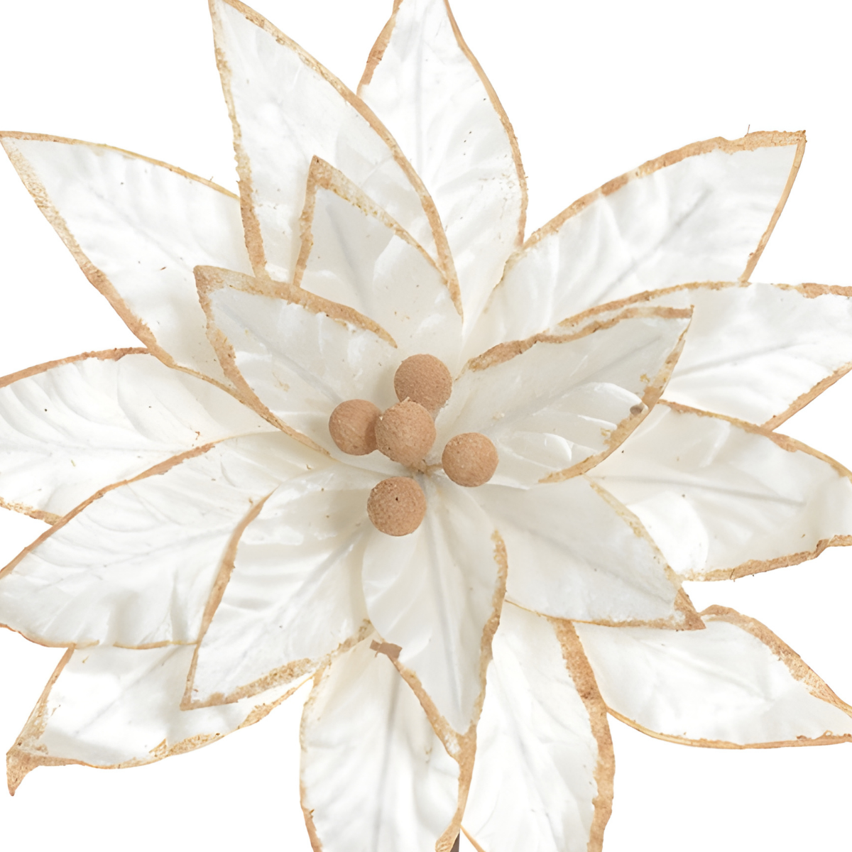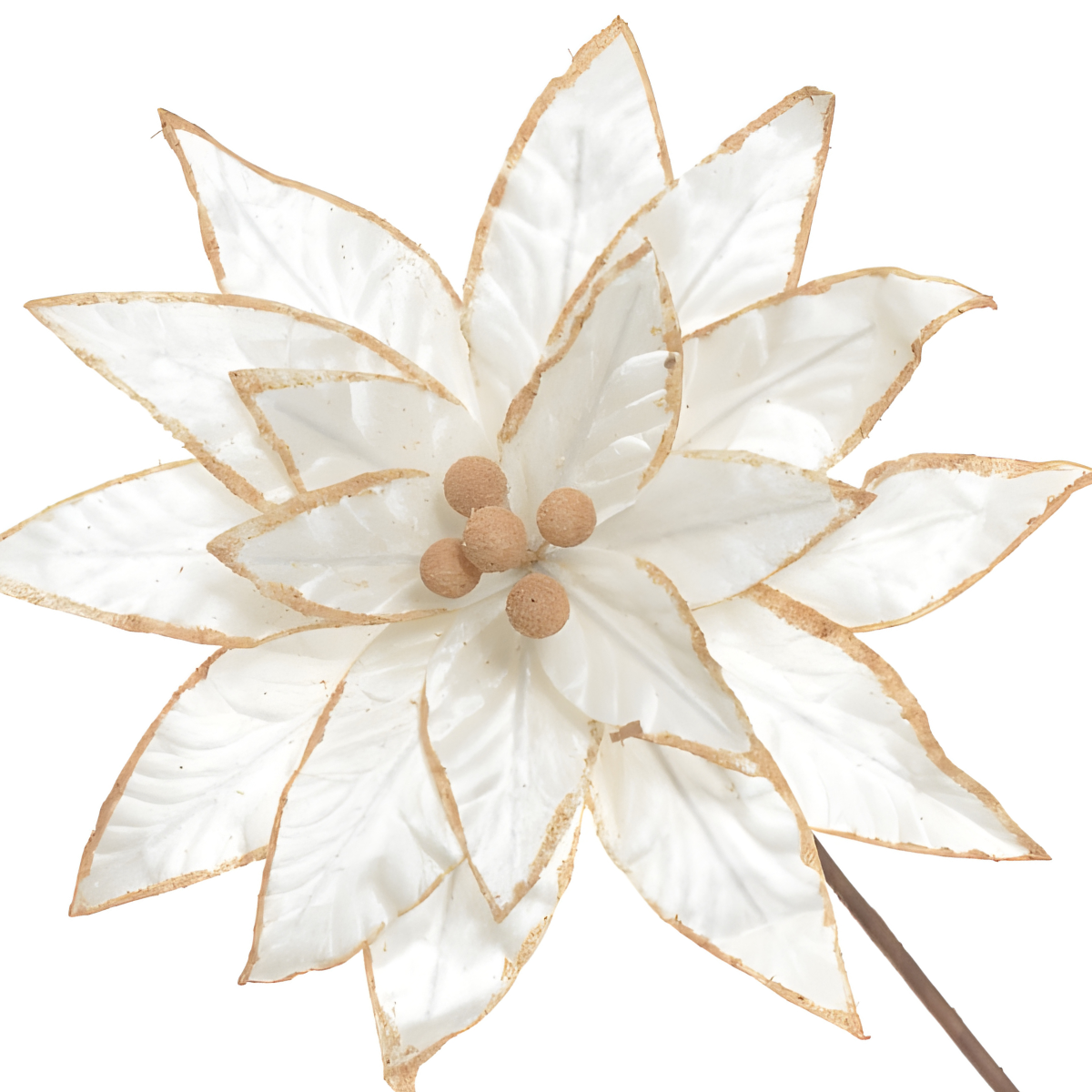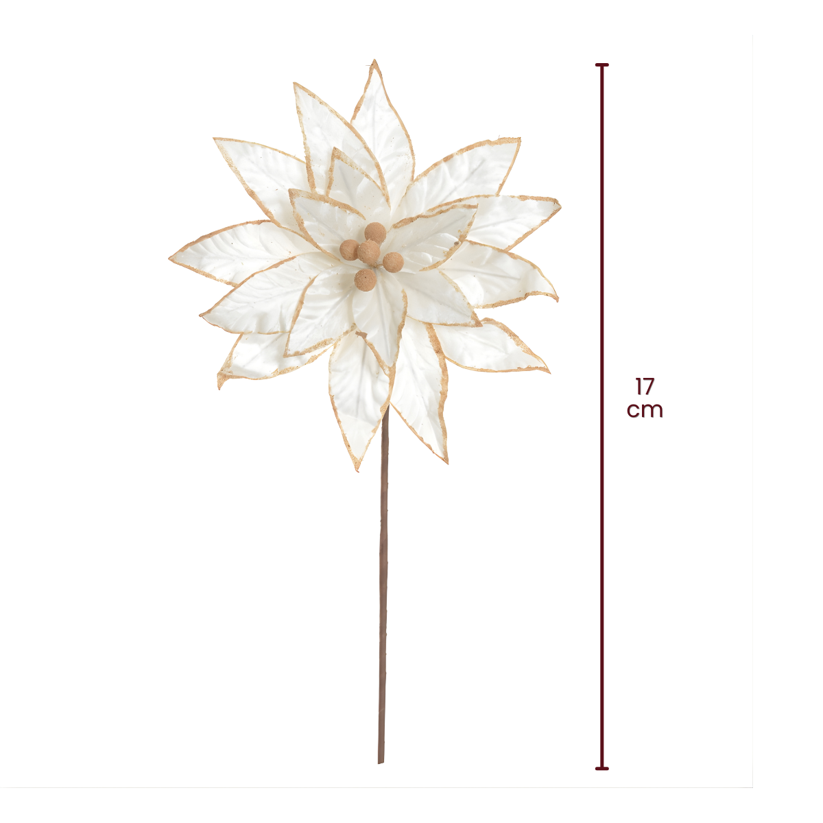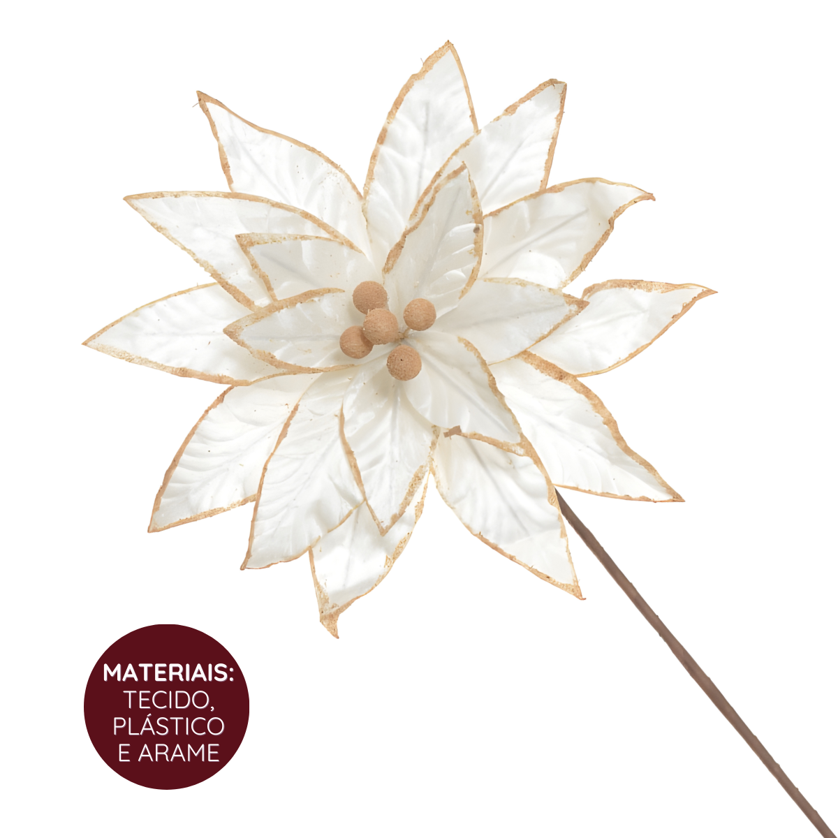 O Bico de Papagaio Natalino Aveludado Branco é a escolha perfeita para trazer elegância, delicadeza e luminosidade à sua decoração de Natal. Com pétalas em tecido aveludado, acabamento dourado e miolo com detalhes texturizados, ele adiciona um toque sofisticado a árvores, guirlandas, arranjos e enfeites especiais.