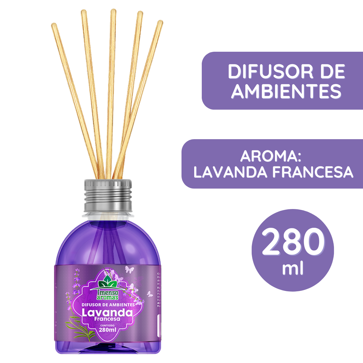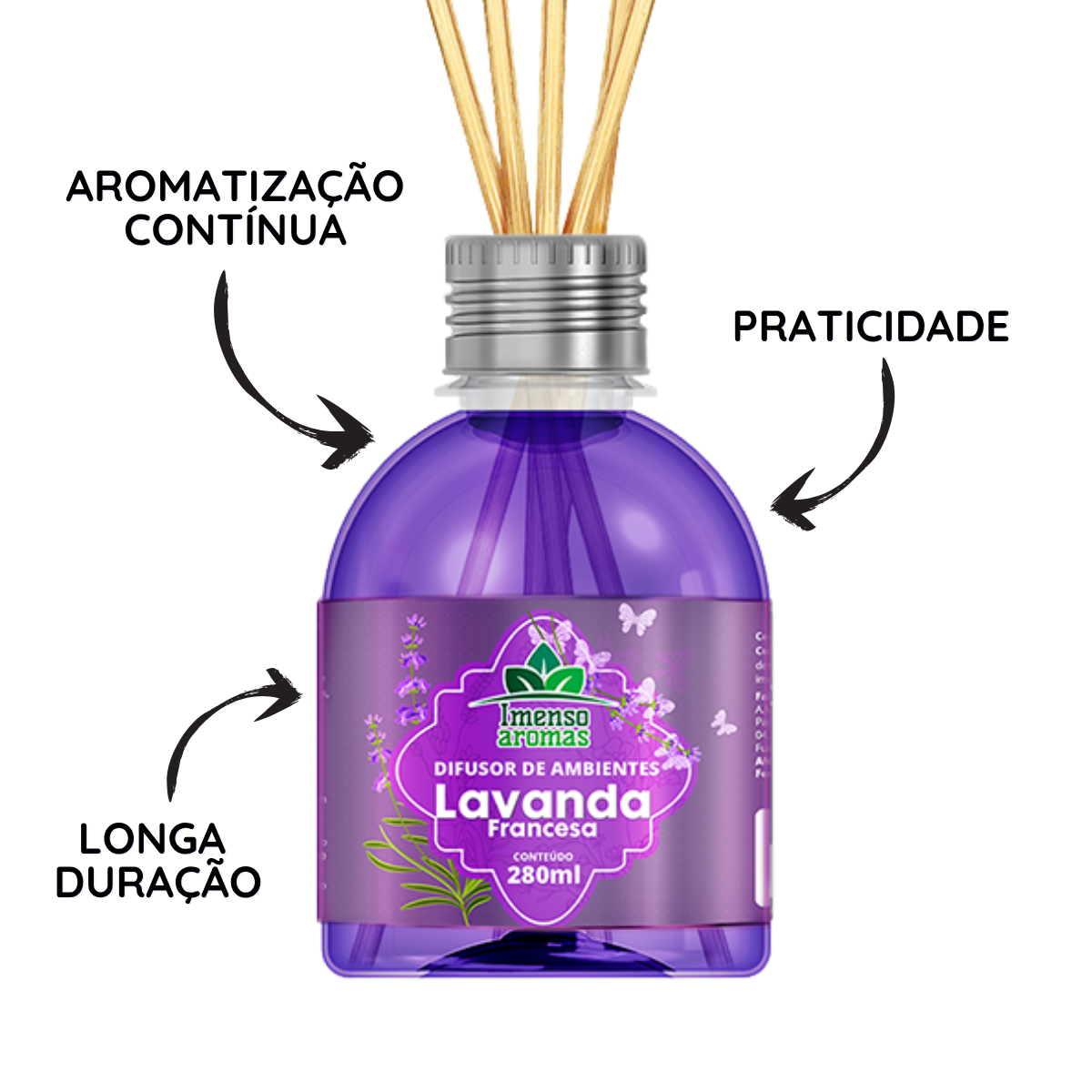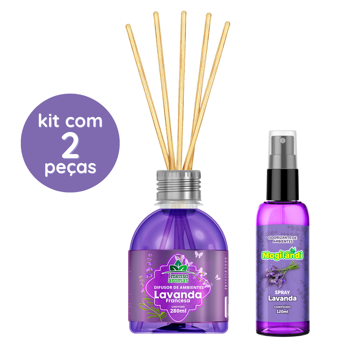 - 2 peças complementares: difusor de ambientes Lavanda Francesa (280ml) e spray odorizante Lavanda (120ml).