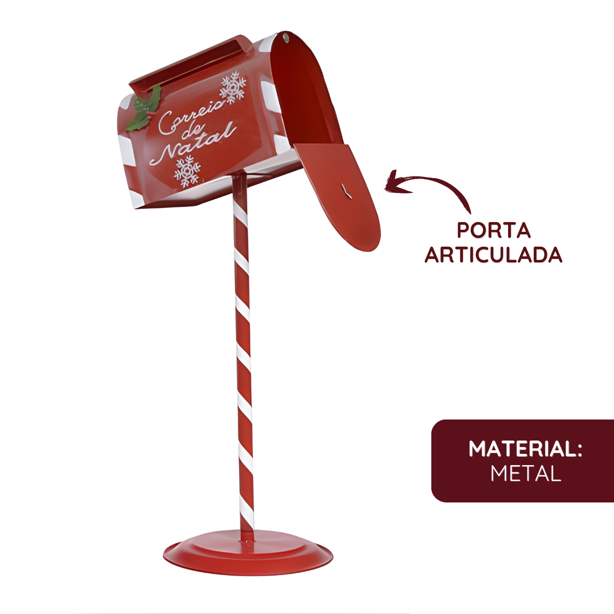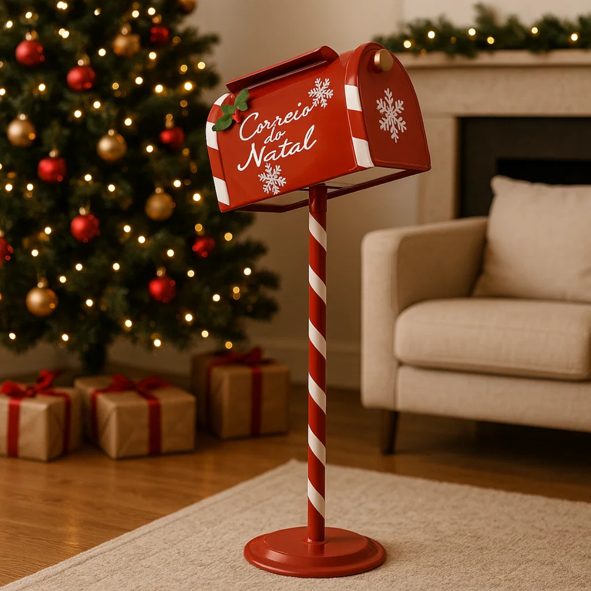 Uso Ideal: Perfeita para decorações de entrada, vitrines, lojas e ambientes temáticos, essa caixa de correios é um destaque em qualquer cenário natalino. Pode ser usada para campanhas de cartinhas, sorteios ou mensagens simbólicas ao Papai Noel.