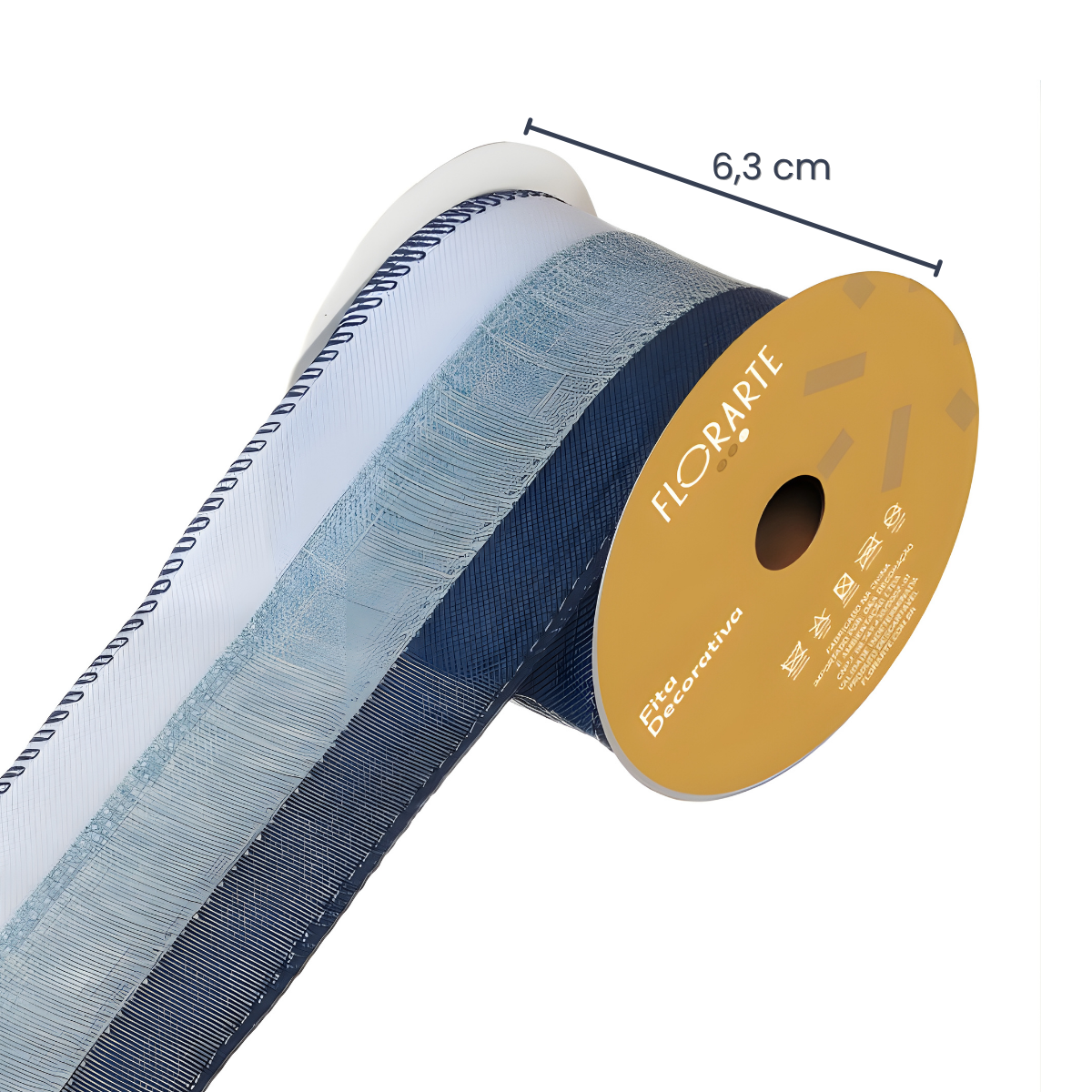 Fita Decorativa Aramada Azul e Branco 6,3cm x 9,14m