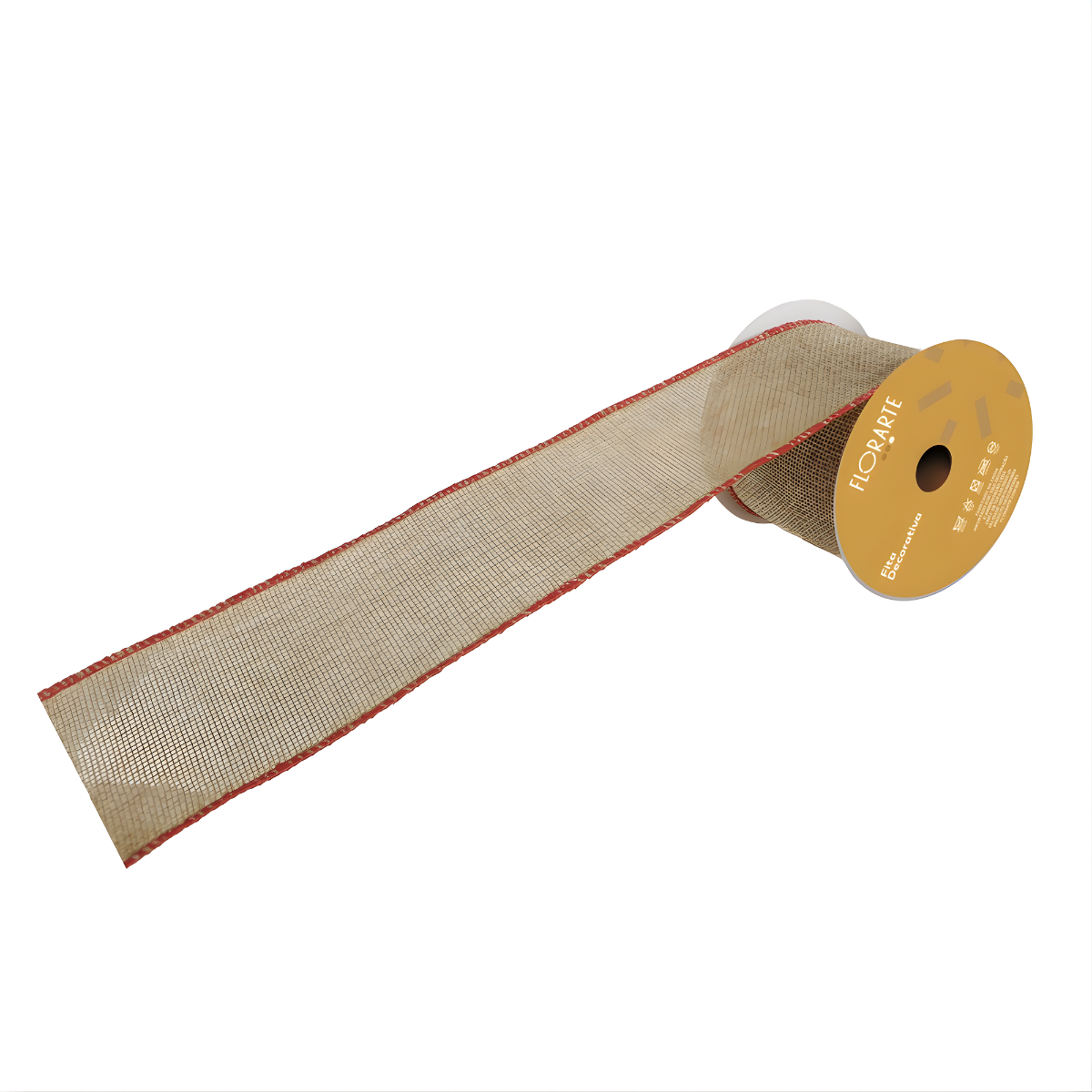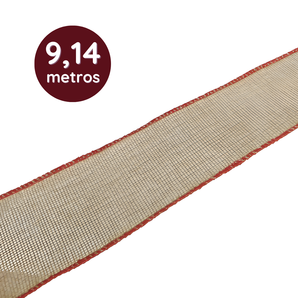 Fita Decorativa Aramada Juta Bege e Vermelha 6,3cm x 9,14m