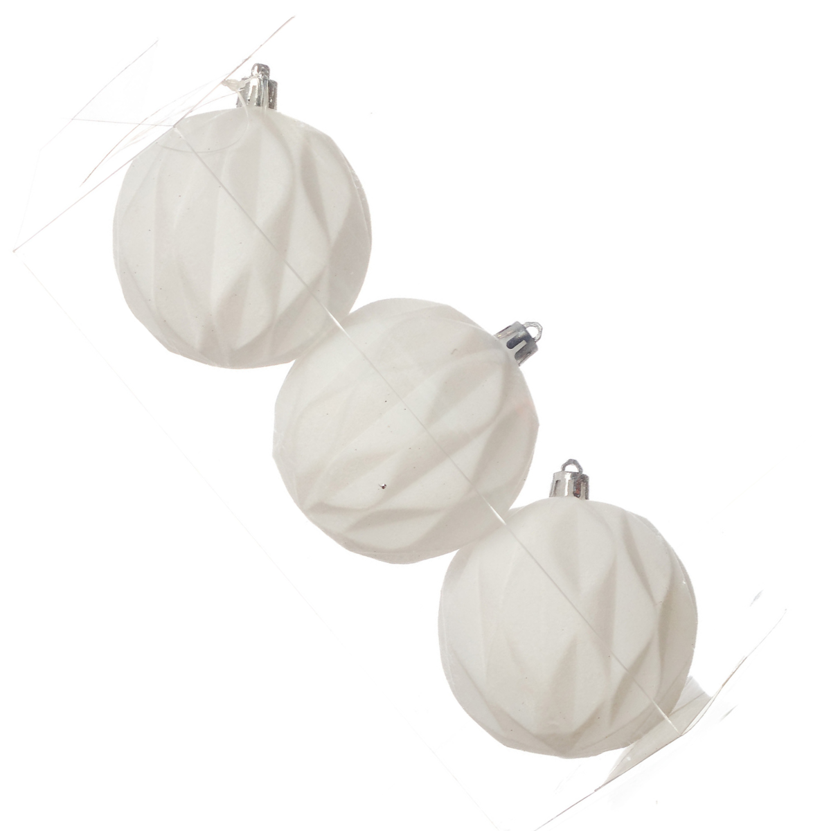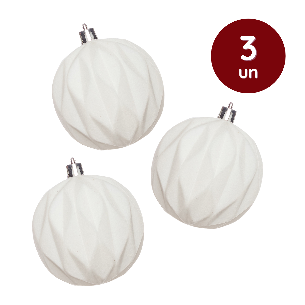 Kit 3 Bolas Natalinas 8cm – Formas Geométricas Branco Fosco