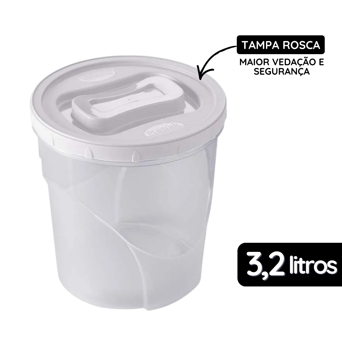 - Tampa com fechamento em rosca para maior vedação e segurança