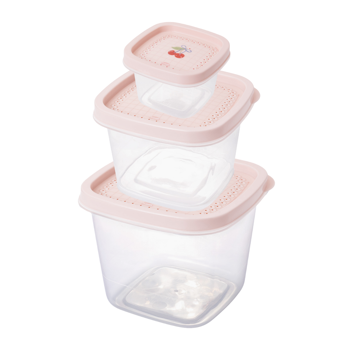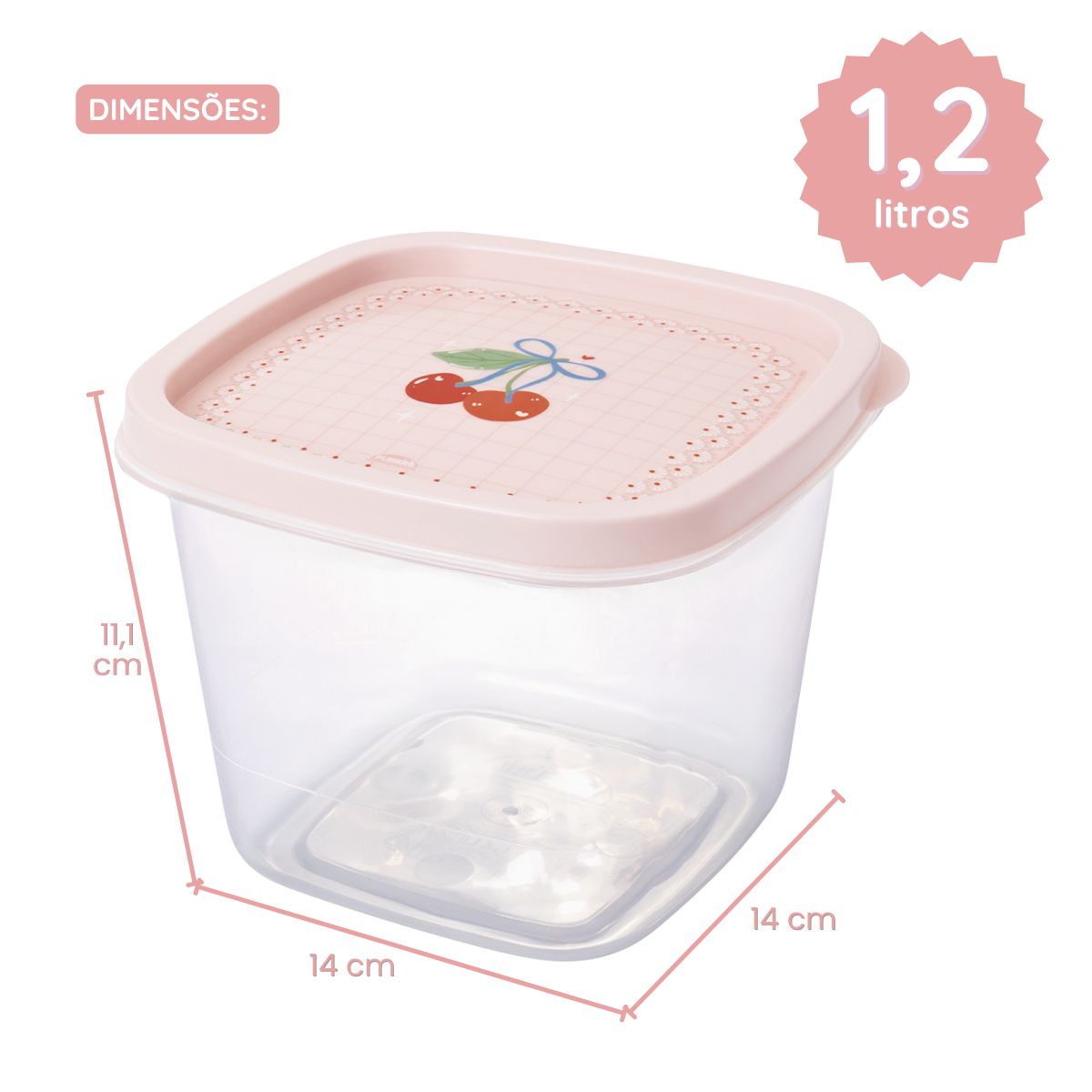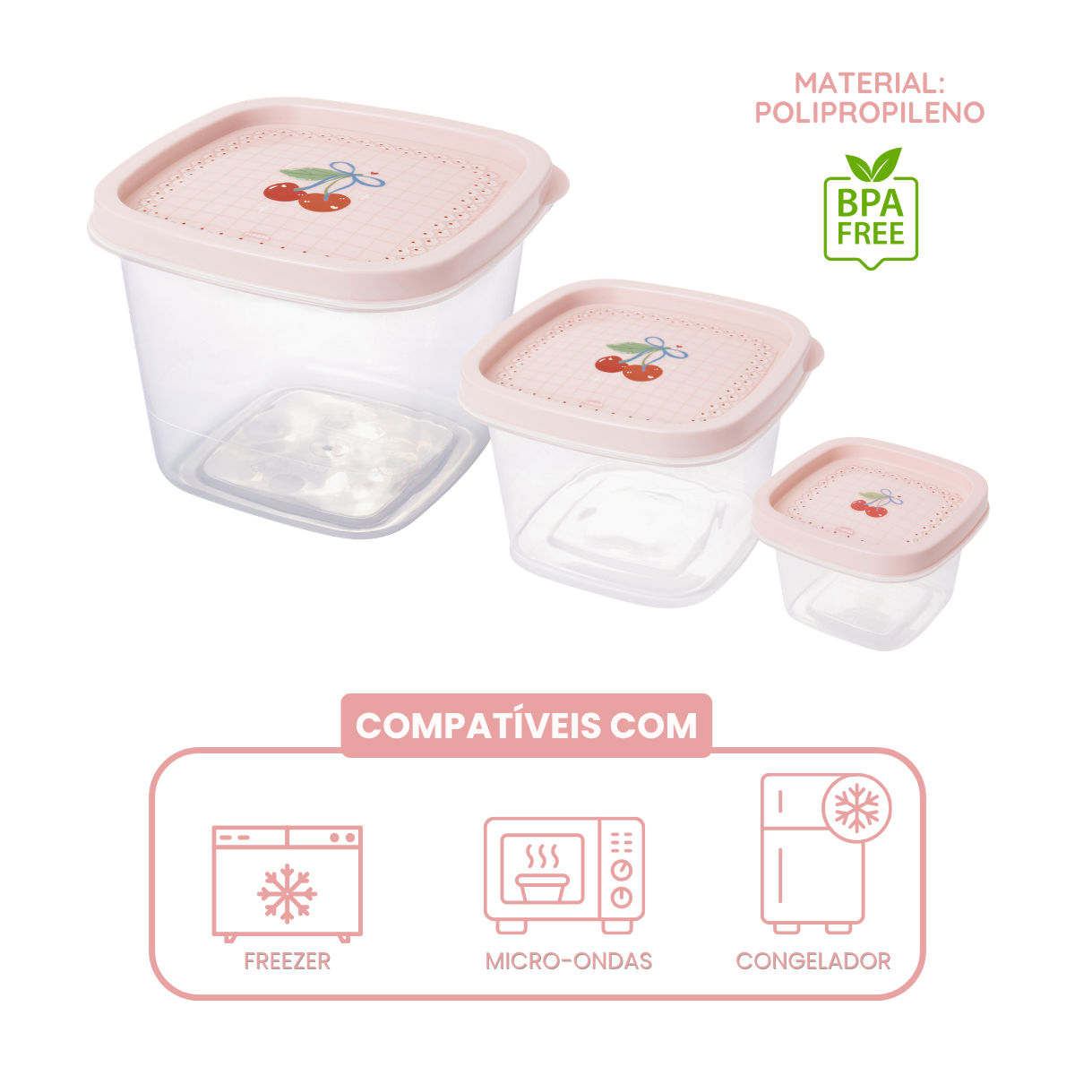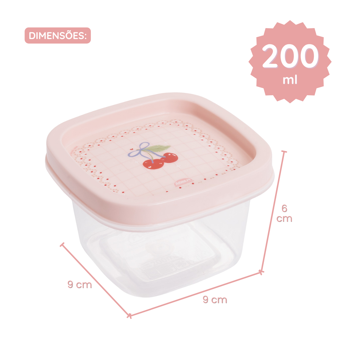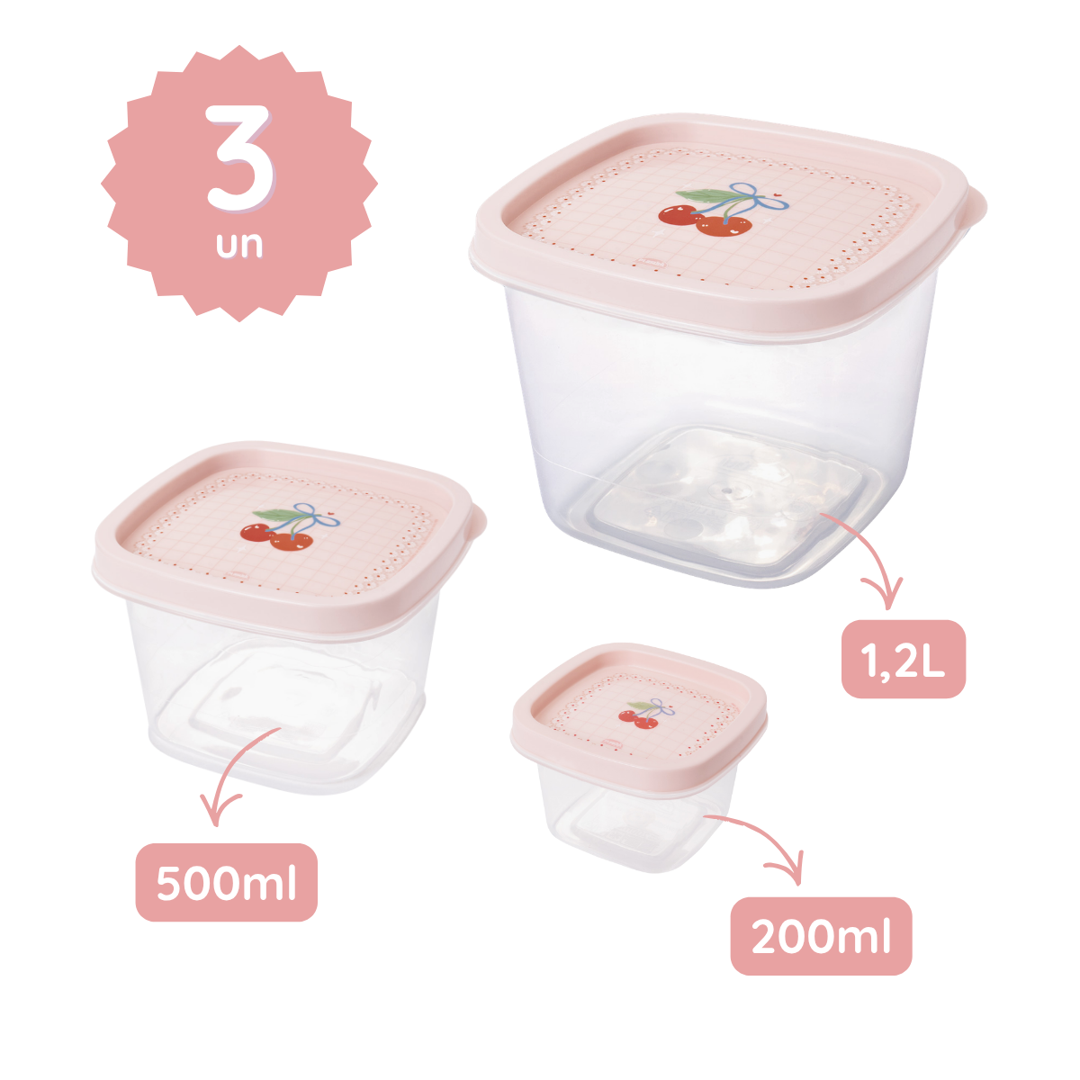 Kit 3 Potes Quadrados com Tampa – Cerejas Rosa (200ml + 500ml + 1,2L)